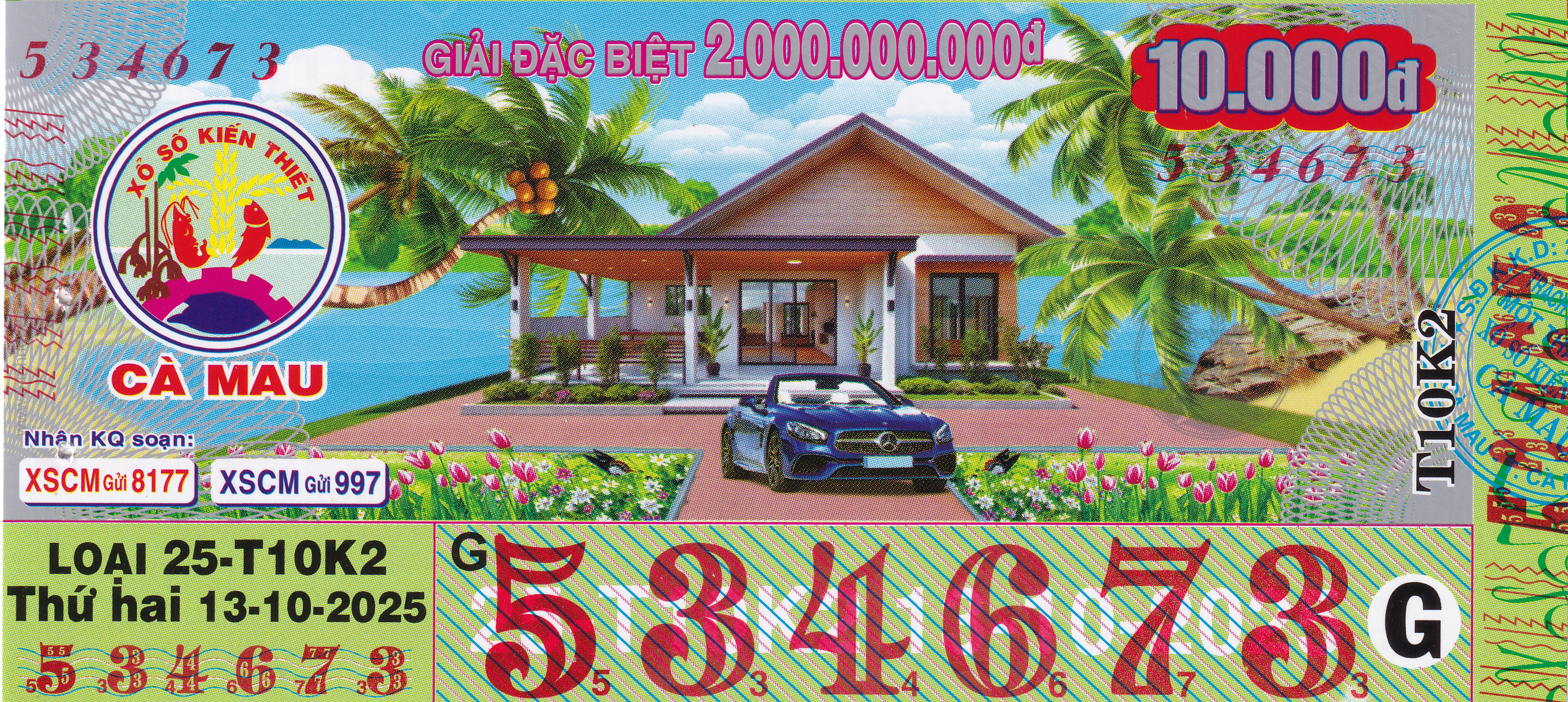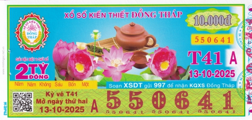 Mẫu vé số Miền Nam ngày 13/10/2025