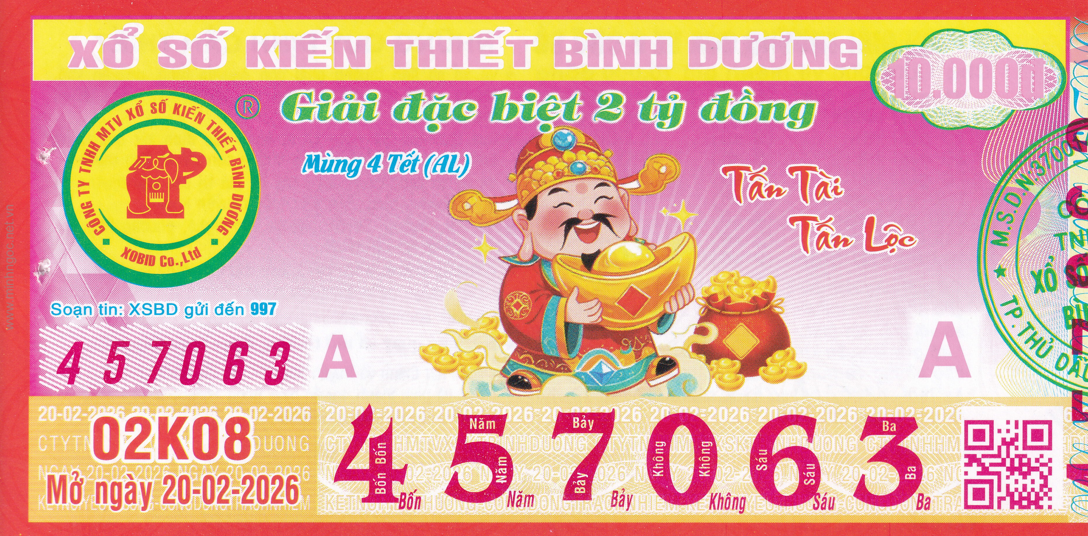 Mẫu vé số Miền Nam ngày 20/02/2026