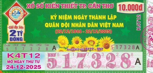 Mẫu vé số Cần Thơ ngày 04/02/2026