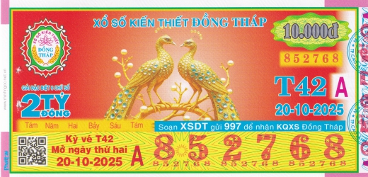 Mẫu vé số Đồng Tháp ngày 20/10/2025