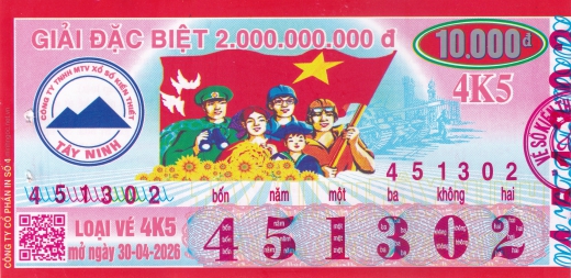 Mẫu vé số Tây Ninh ngày 30/04/2026