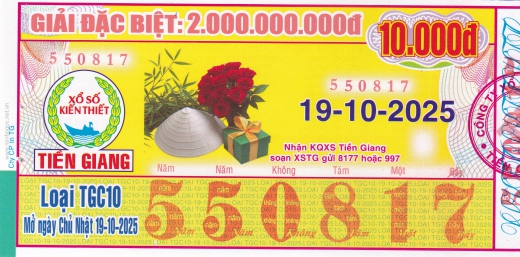 Mẫu vé số Tiền Giang ngày 19/10/2025
